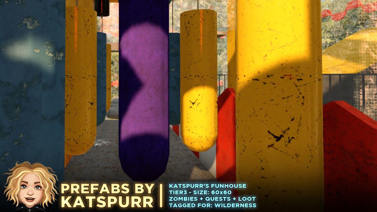 Идеально подходит для тех, кто устал от однообразных квестов и хочет испытать что-то совершенно новое: яркие цвета, зеркальные коридоры, ловушки-шутки и испытания на ловкость. При этом POI полностью вписан в механику игры — здесь есть зомби всех типов, все виды квестов (Fetch, Clear, Restore Power), обычный и скрытый лут, а также настоящая Tier 3-награда в финальной комнате.