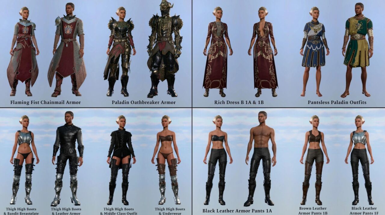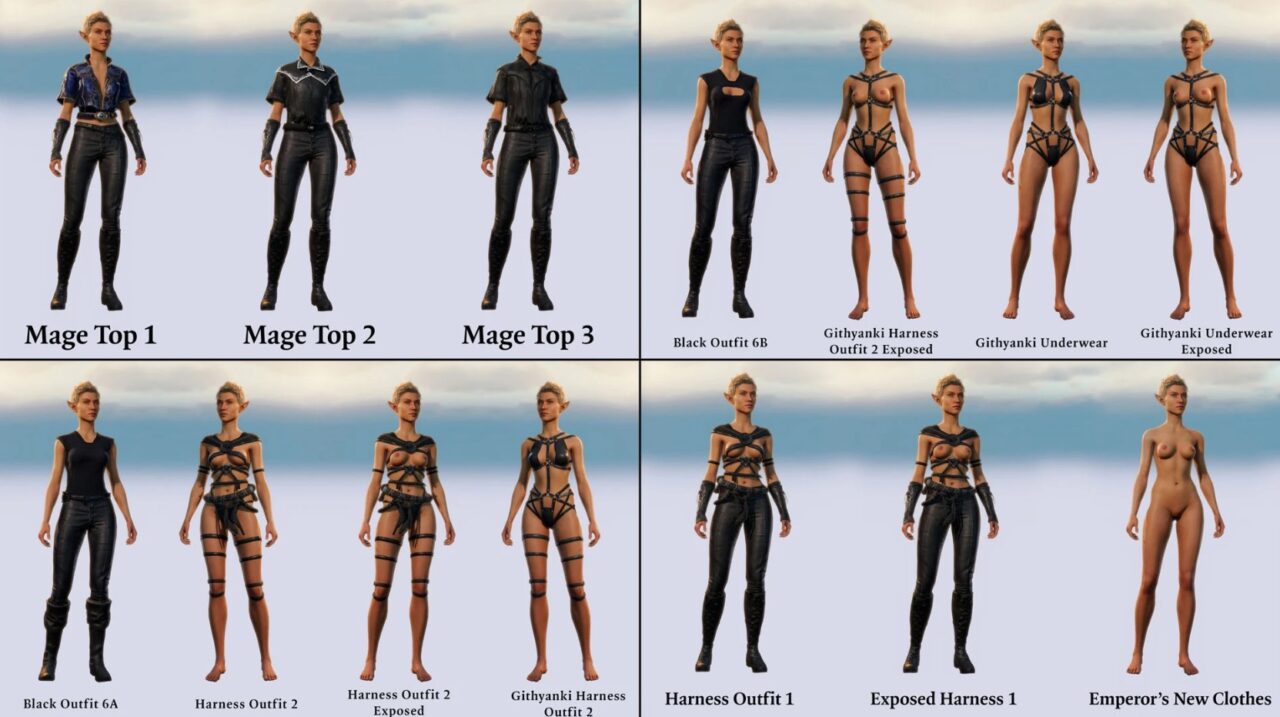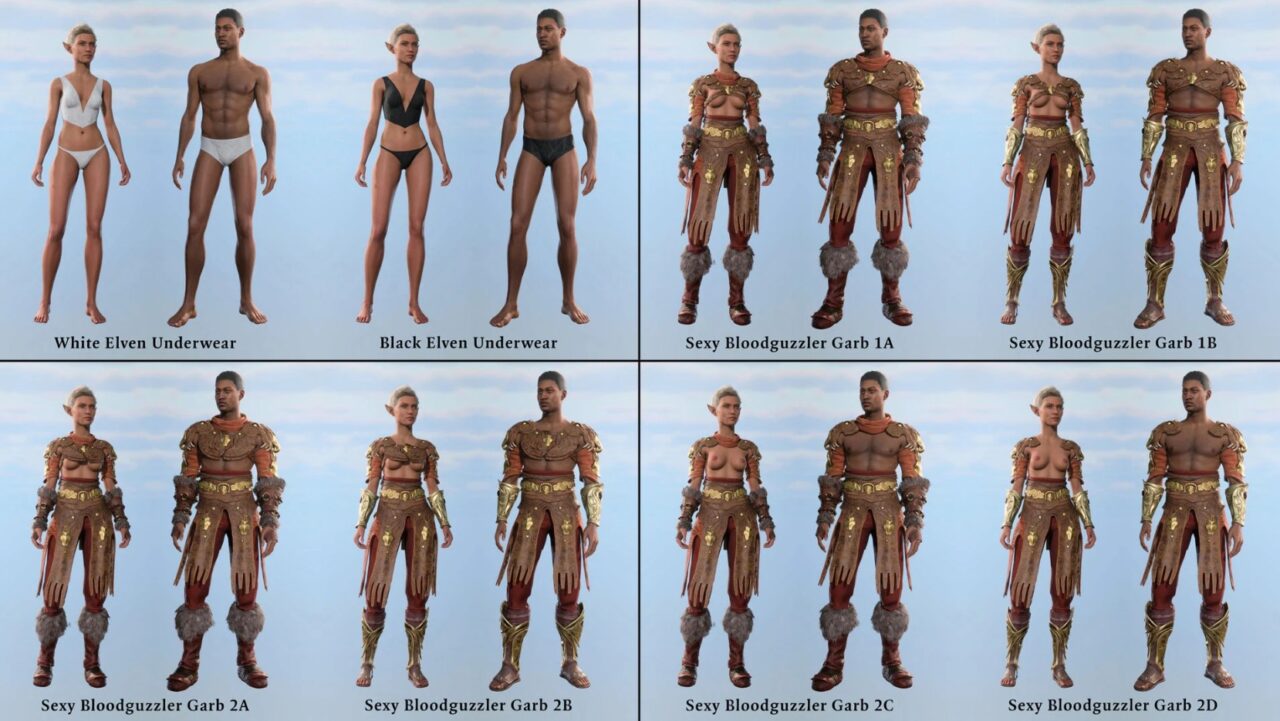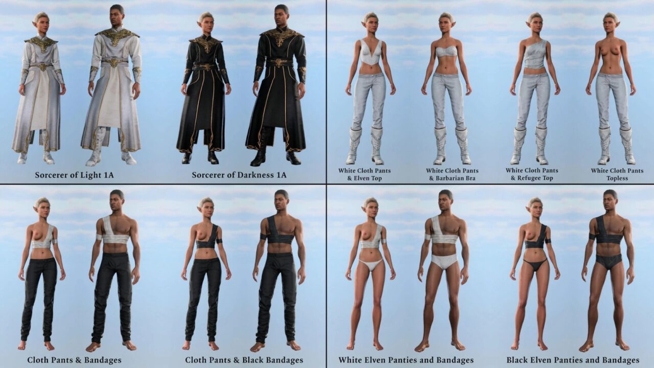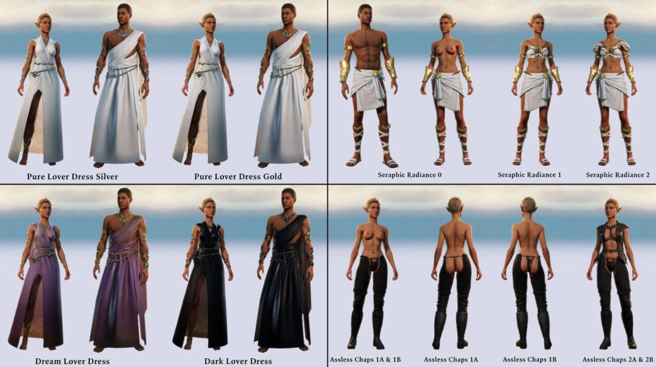 Представьте: более 800 уникальных предметов экипировки в NSFW-версии, которые преобразят вашего персонажа в Baldur's Gate 3, добавив тысячи визуальных вариаций для полного погружения. Этот мод идеален для игроков, ценящих стиль и удобство — экипировка адаптируется под класс, уровень и proficiency, обеспечивая баланс для любого прохождения без лишних забот о балансе. Визуалы уникальны для каждого образа, от легких роб до тяжелых доспехов, с одинаковой эффективностью для всех билдов.