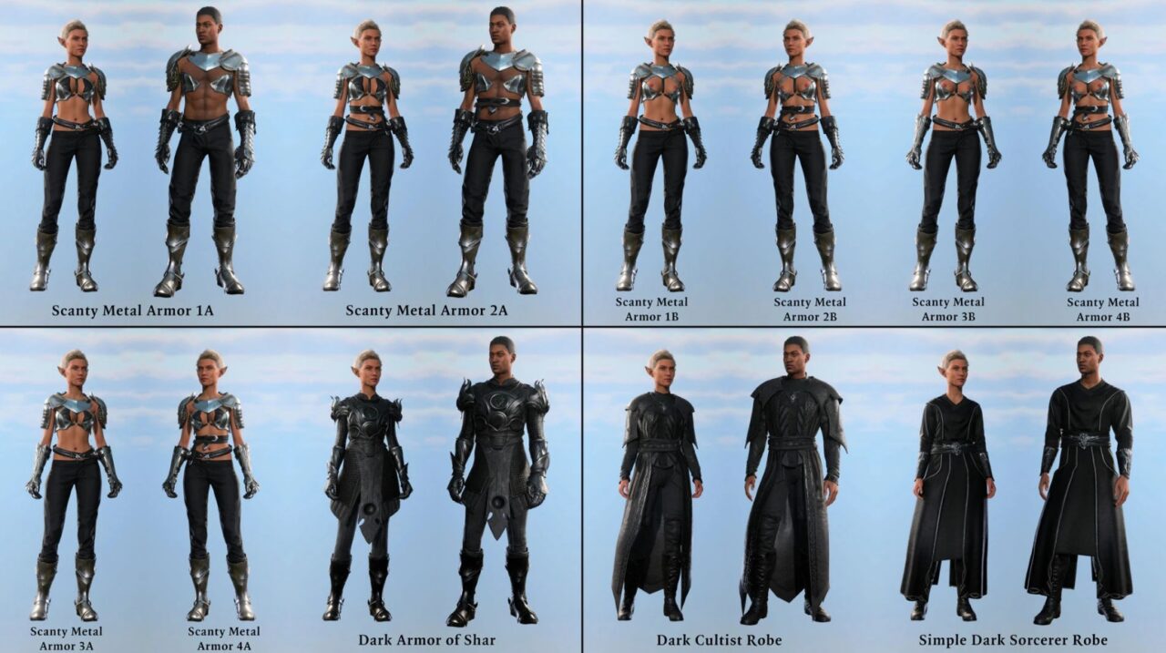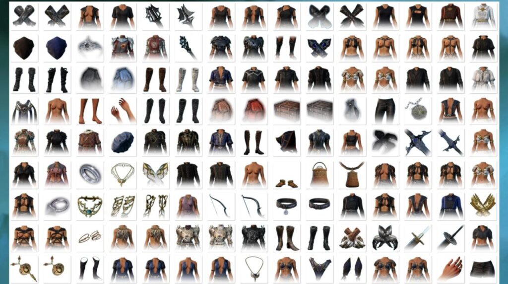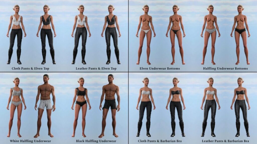 Мод предлагает максимум опций для гуманоидных рас — людей, эльфов, дроу и тифлингов: почти 700 визуалов для женских моделей и свыше 500 для мужских. Иконки с женским персонажем — это стильный выбор, не влияющий на доступность. Полный список визуалов в описаниях предметов, как на примере пояса кузнеца.