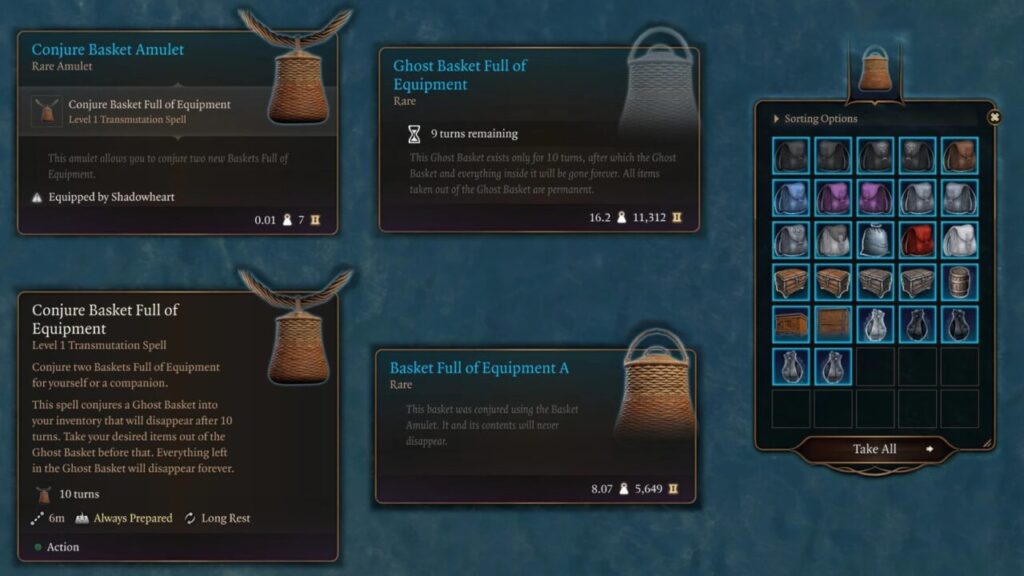 - Купите Conjure Basket Amulet у торговца в Роще друидов (длинный отдых обновит ассортимент).