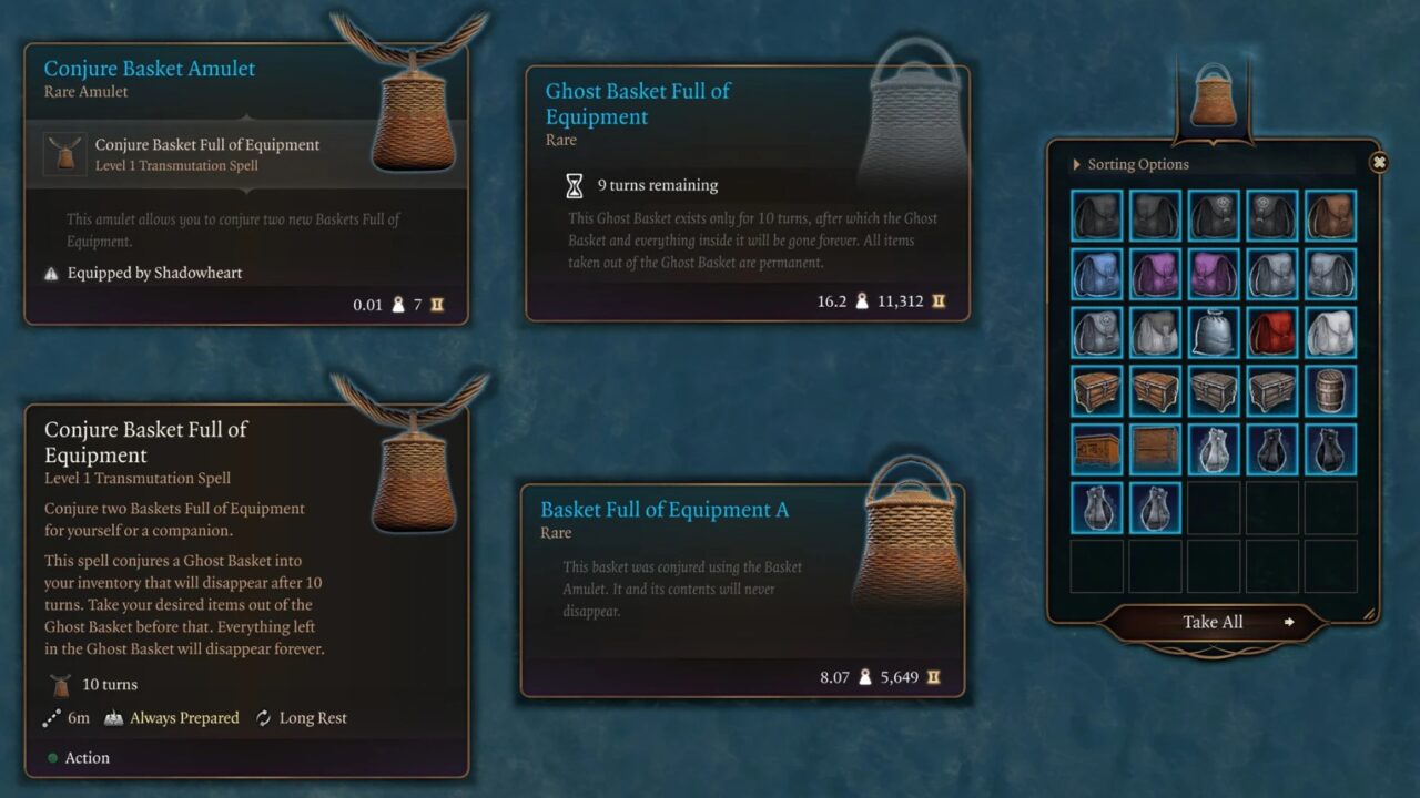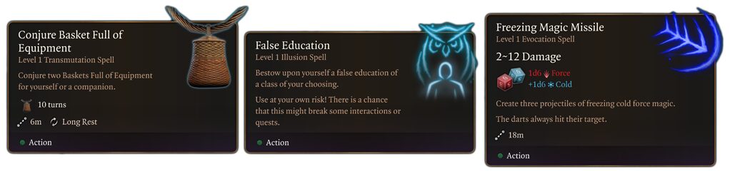 Получите Conjure Basket Full of Equipment для мгновенного призыва корзины, False Education для обмана в диалогах через временные классовые теги, плюс утилиты: Spell Recovery для восстановления слотов, Squad Cleanse и Squad Heal для партии, Invisible Woman для идеальных скриншотов, Transform into NPC. Бесплатные бонусы — Speak with Animals, Read Thoughts и усиленные боевые спеллы.