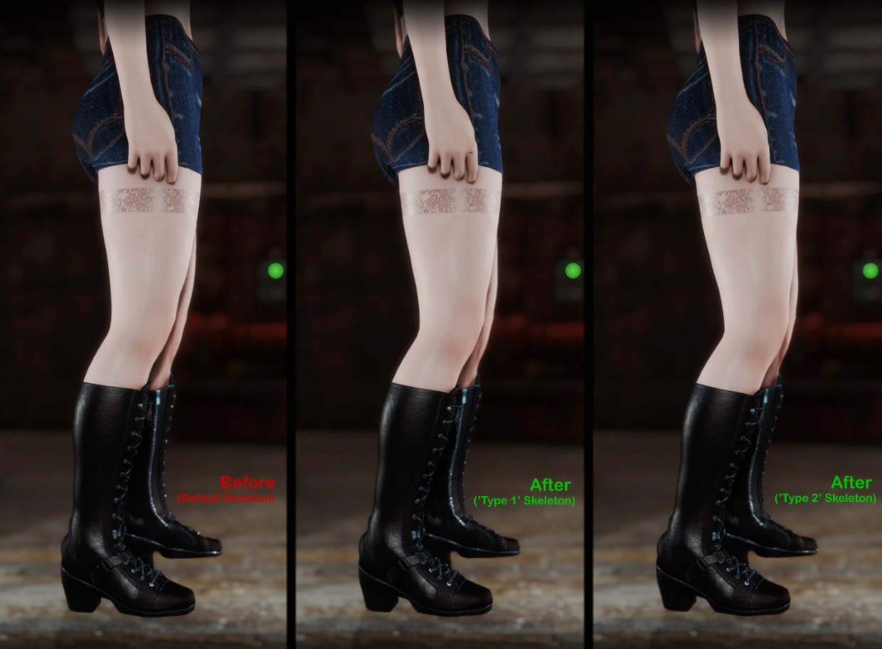 - Интеграция с Fallout 4 High Heels System для полной совместимости с каблуками.