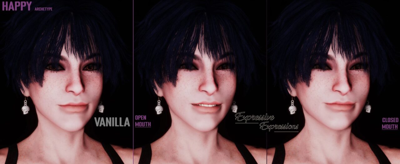 Установка максимально удобная: FOMOD-инсталлятор с готовыми патчами под популярные моды лиц HiPoly Faces REDUX и Realistic Facial Proportions. В комплекте обновлённые зубы Pearly Whites с опцией установки только текстур.
